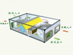 新風(fēng)系統(tǒng)是根據(jù)在密閉的室內(nèi)一側(cè)用專用設(shè)備向室內(nèi)送新風(fēng),再從另一側(cè)由專用設(shè)備向室外排出,在室內(nèi)會形成“新風(fēng)流動場”,從而滿足室內(nèi)新風(fēng)換氣的需要。實施方案是:采用高風(fēng)壓、大流量風(fēng)機、依靠機械強力由一側(cè)向室內(nèi)送風(fēng),由另一側(cè)用專門設(shè)計的排風(fēng)風(fēng)機向室外排出的方式強迫在系統(tǒng)內(nèi)形成新風(fēng)流動場。在送風(fēng)的同時對進入室內(nèi)的空氣進過濾、滅毒、殺菌、增氧、預(yù)熱(冬天).